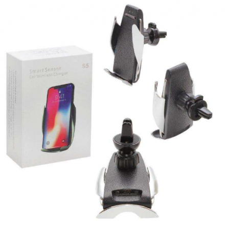 Автодержатель с функцией беспроводного ЗУ с автоматичеcким зажимом S5 10W QC3.0