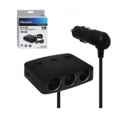 Переходник в прикуриватель (1504) на 4 ЗУ, 2USB, OLESS