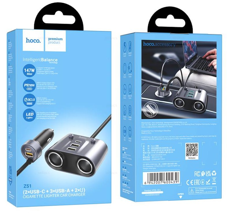 АЗУ Hoco Z51 147W 2USB C 3A 2 в 1
