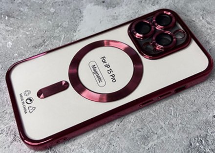 Накладка для APP Iph 15 Pro Max с защитой камеры, MagSafe красный