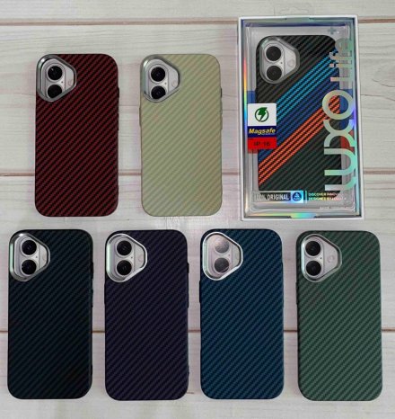 Накладка для Apl IPh 16, Luxo карбон, без максейф, цветные пллоски