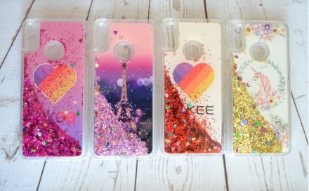 Накладка для Huawei Honor 8X 9X Lite, Жидкие блестки, сердечки, картинки в ассортименте