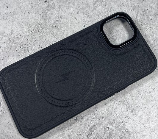 Накладка для Apl IPh 14 Pro Max, Magsafe, под кожу, черный