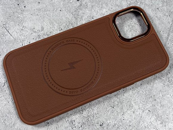 Накладка для Apl IPh 14 Pro Max, Magsafe, под кожу, коричневый