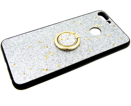 Силикон для Huawei Honor 8X, блестки с кольцом, серебро