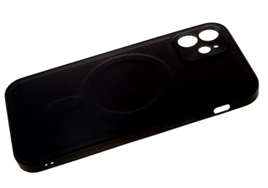 Накладка для Apl IPh 12, Magsafe, под кожу, с защитой камеры, черный