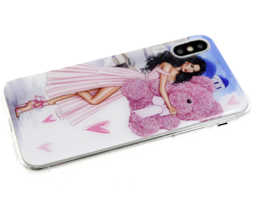Силикон для Apl IPh X/XS, Гламур, Девушка с мишкой из роз