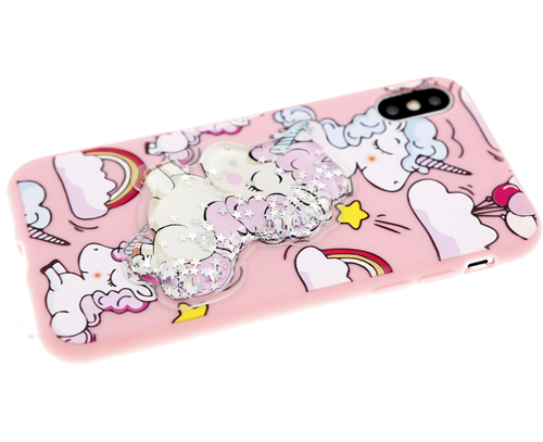 Силикон для SAMSUNG A105F A10, M105F M10, Единорожек, жидкие блестки, розовый