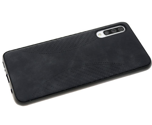 Накладка для SAMSUNG A21 (A215), под кожу, черный