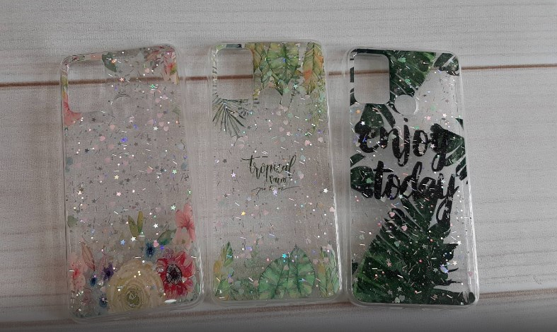 Накладка для SAMSUNG A415F A41, блестки сердечки, листья
