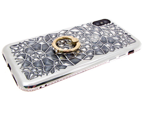 Силикон для SAMSUNG A530F (A8 2018), с кольцом, окантовка со стразами, серебро