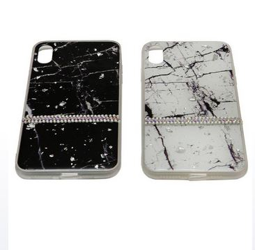 Накладка для SAMSUNG A605F (A6 Plus 2018), Мраморный со стразами, черный