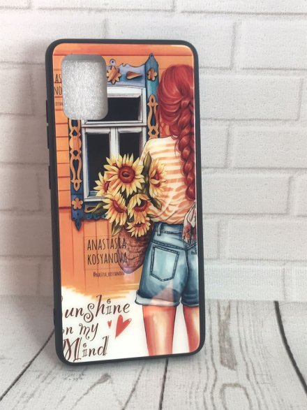 Накладка для Samsung A515F A51, Стекло, девушка с подсолнухами