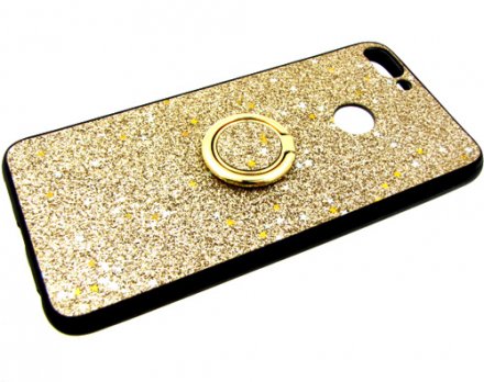Силикон для Samsung J610F (J6 Plus 2018), блестки с кольцом, золото