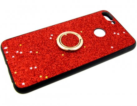 Силикон для Samsung J610F (J6 Plus 2018), блестки с кольцом, красный