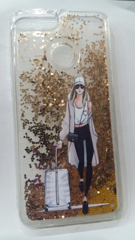 Накладка для XIAOMI Redmi 8, Жидкие блестки, Девушка с чемоданом
