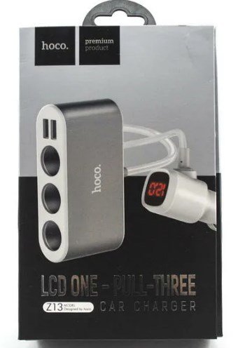 Переходник в прикуриватель HOCO Z13 на 3 прикуривателя, 2 USB выхода, со шнуром