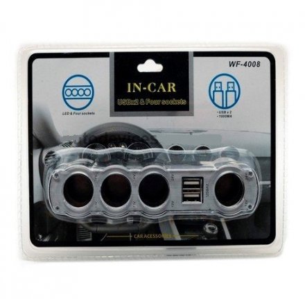 Переходник в прикуриватель (WF-4008) на 4 ЗУ, 2 USB