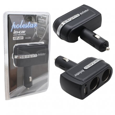 Переходник в прикуриватель (3302-1) на 2 ЗУ, 1USB