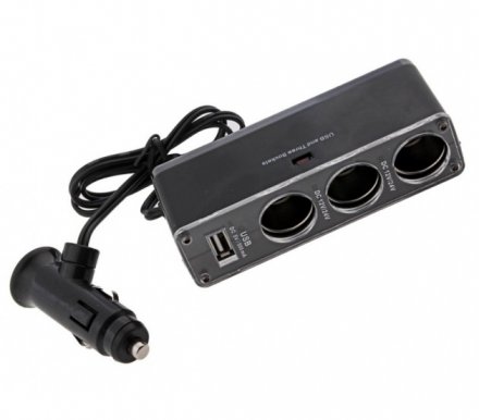 Переходник в прикуриватель (WF0016) на 3 ЗУ, 1USB