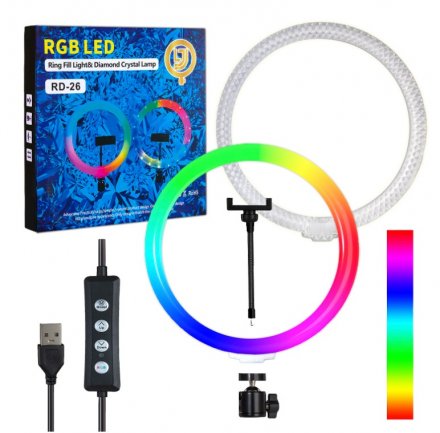 | Лампа светодиодная кольцевая c пультом для съемки цветная диаметр 26см, Diamond Lamp двухстороннее без штатива | Нет в наличии |