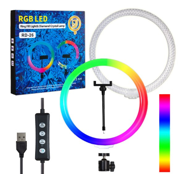 Лампа светодиодная кольцевая c пультом для съемки цветная диаметр 26см, Diamond Lamp двухстороннее без штатива