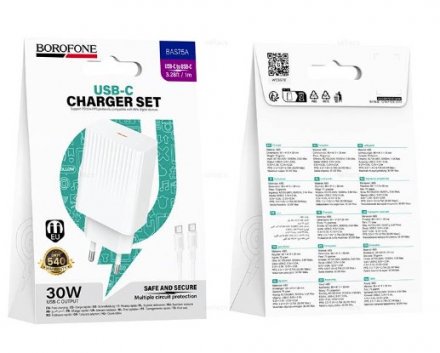 СЗУ BOROFONE BAS75A PD30w 3.0A 1USB C с кабелем TYPE C на TYPE C