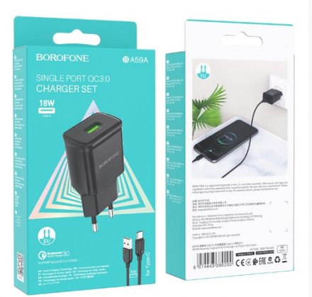СЗУ BOROFONE BA72A 3.0A 1USB с кабелем TYPE-C