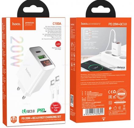 СЗУ HOCO C101A 20W PD + QC3.0 1USB с кабелем Type-c