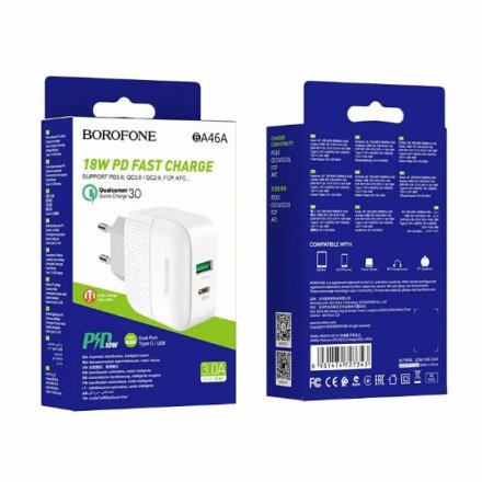 СЗУ BOROFONE BA46A Premium 1USB, 1USB C, 3A, 18W