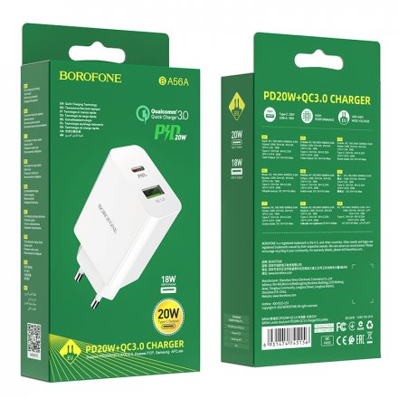 СЗУ BOROFONE BA56A PD + Quick Charge 3.0 Type-C 3A