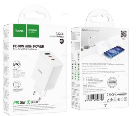 СЗУ HOCO C126A PD40W + QC3.0 dual port 2 Type-c