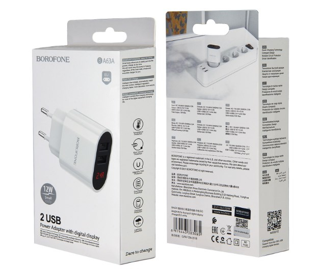 Авторизуйтесь на сайте, чтобы получить оповещение о поступлении товара СЗУ BOROFONE BA63A, 2 USB 2.4 A 12W СЕТЕВОЕ ЗАРЯДНОЕ УСТРОЙСТВО С USB Нет в наличии Описание: СЗУ BOROFONE BA63A, 2 USB 2.4 A 12W Оповестить о поступлении товара