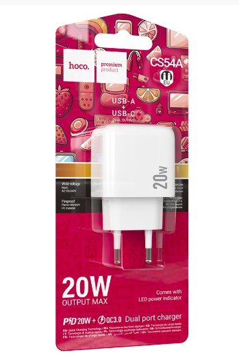СЗУ HOCO CS54A Surplus 1USB, 1USB C, 20W