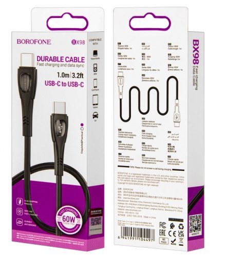 USB кабель для TYPE-C BOROFONE BX98, Type-C на Type-C, 60W
