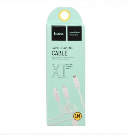 USB кабель HOCO X1 Rapid 3в1 Micro, Type-c, Lightning, 2.1А