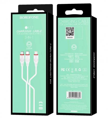 USB кабель Borofone BX17 Times speed 3 в 1 USB, Type-C, Lightning MicroUSB, 2А, 1 м