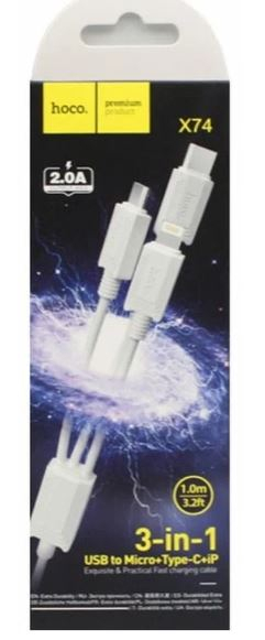 USB кабель HOCO X74 Xpress 3в1 Micro, Type-c, Lightning, 2А, 1 м