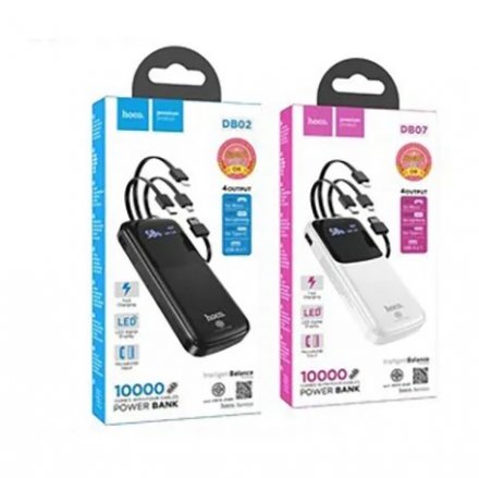 Внешний аккумулятор HOCO DB07, 10000mAh с шнуром Type-C, Lightning, Micro 1USB 2.1A с дисплеем