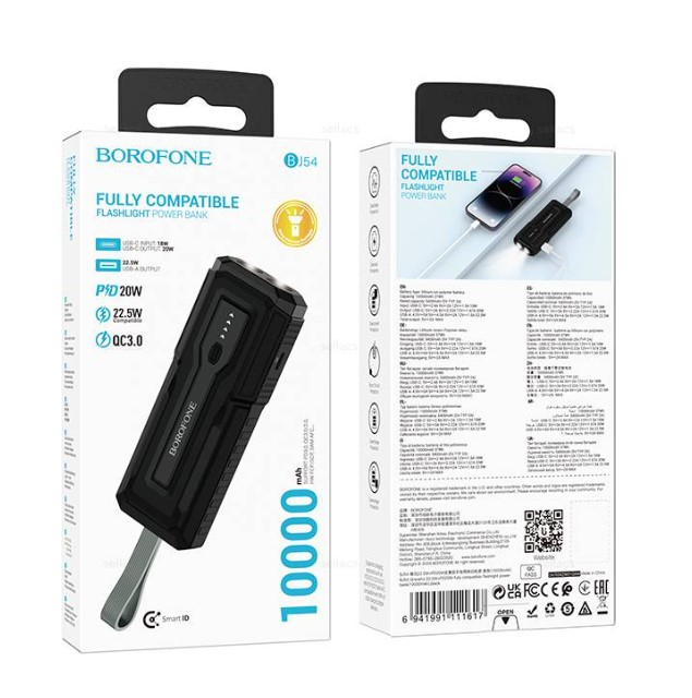 Внешний аккумулятор BOROFONE BJ54, Graceful 10000 mAh, 1USB, 1USB-C, 3А, PD20W, 22,5W, фонарик