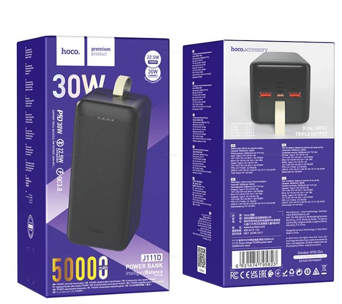 Внешний аккумулятор HOCO J111D Smart charge PD20W QC3.0, 50000 mAh