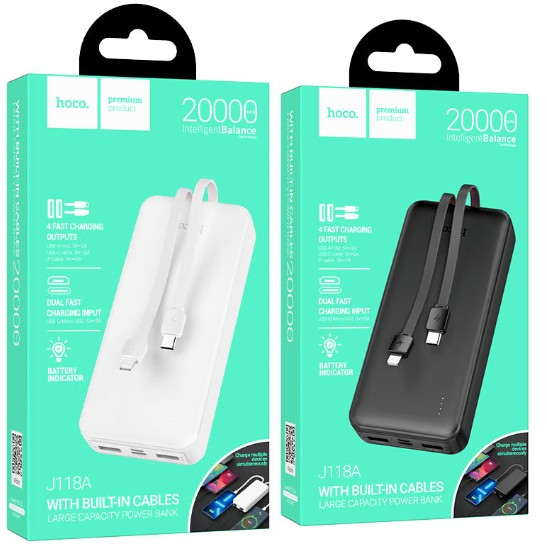 Внешний аккумулятор HOCO J118A Speed energy 20000mAh 2USB Type C, MicroUSB, кабель Lightning, Type