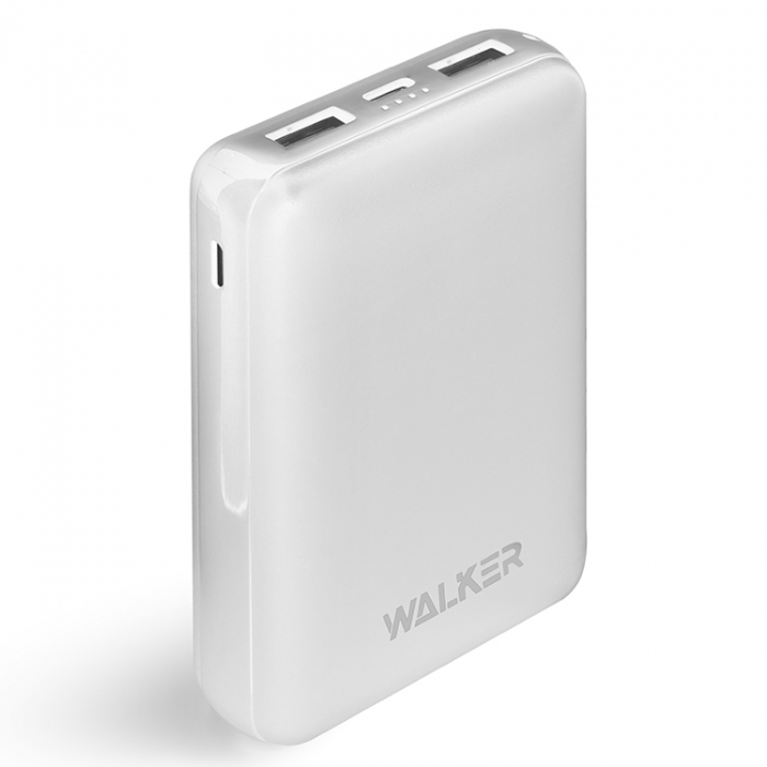 Внешний аккумулятор Walker WB-310, 10000 mAh, Li-Pol, 2.1A вх/вых, USBx2, microUSB, Type-C, пластик, белое