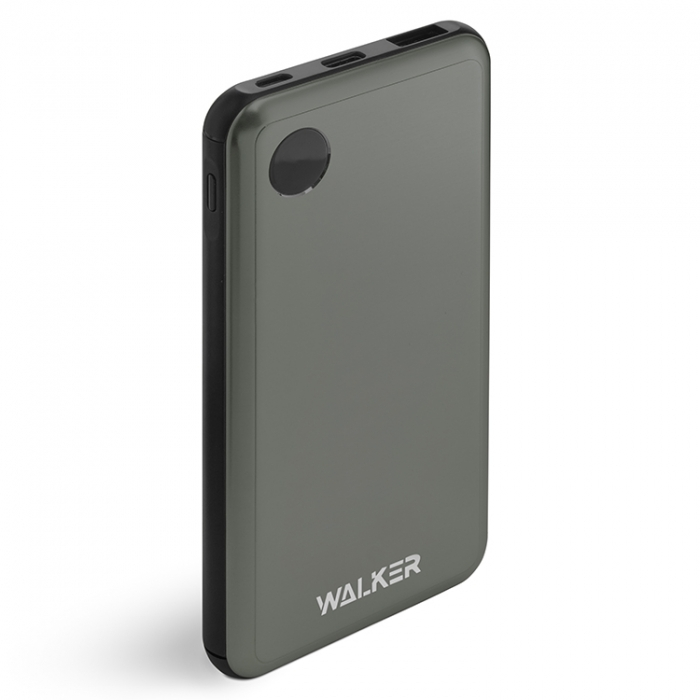 Внешний аккумулятор Walker WB-510, 10000 mAh, Li-Pol, 2.1A вх/вых, Type-C, дисплей, металл, серое