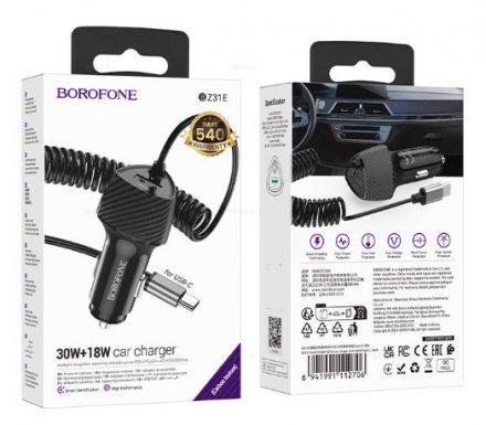 АЗУ BOROFONE BZ31E. PD18W QC3.0. с кабелем Type C